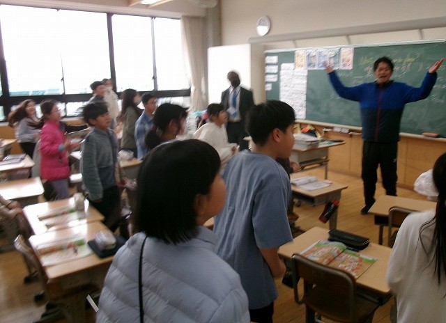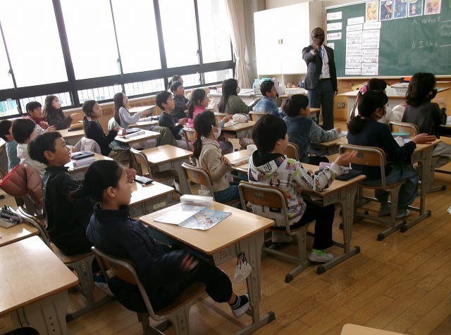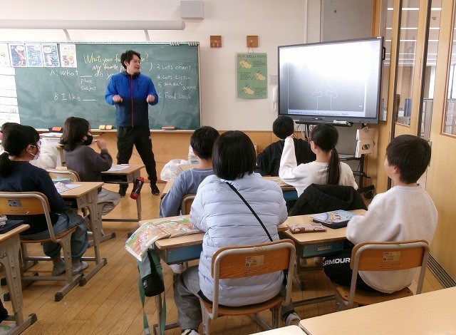 外国語 4年 公開日 2026/02/06 更新日 2026/02/06 4年 4年生が英語の学習をしていました。英語の歌に合わせて身体を動かしながら歌いました。ジャンプしたり、手を振ったり、指さしをしたり、馬に乗るポーズを繰り返したりして歌いました。汗ばむような熱量で元気に歌えました。 +3 4年生