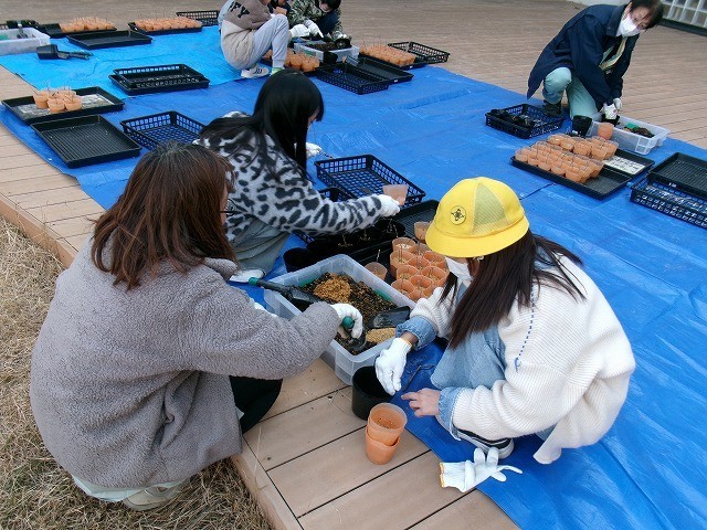 緑化委員会が2学期に植えた苗木の植え替え作業をしていました。