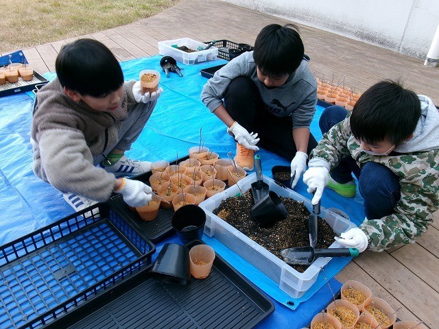 小さな根を生やした苗木に感動しながら植え替えてました。