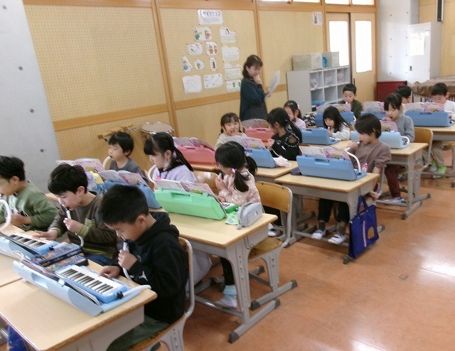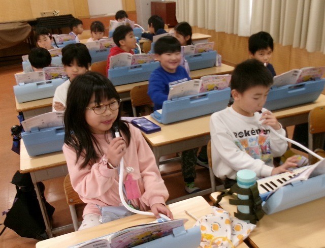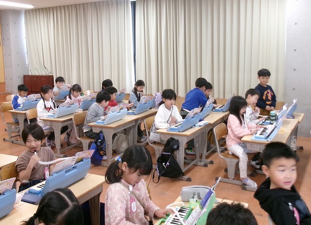音楽 1年 公開日 2026/02/13 更新日 2026/02/13 1年 1年生が音楽で鍵盤ハーモニカの練習をしていました。きらきら星を練習していました。みんな集中して個人練習をしていました。友達とグループを作り合わせて演奏している人もいました。とても上手になりましたね。 +5 1年生