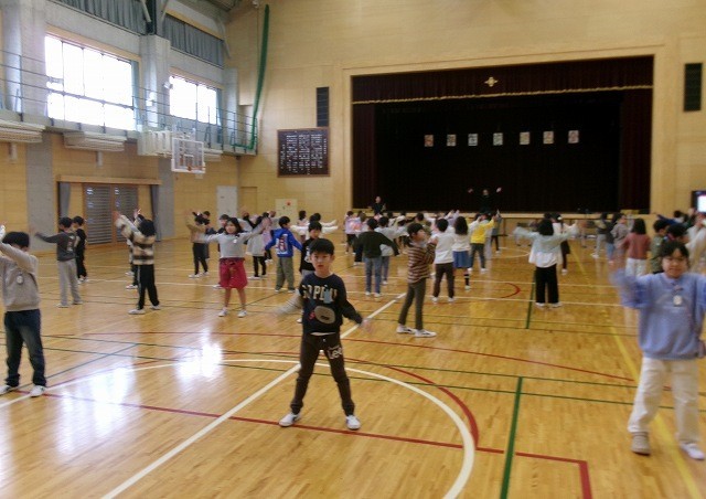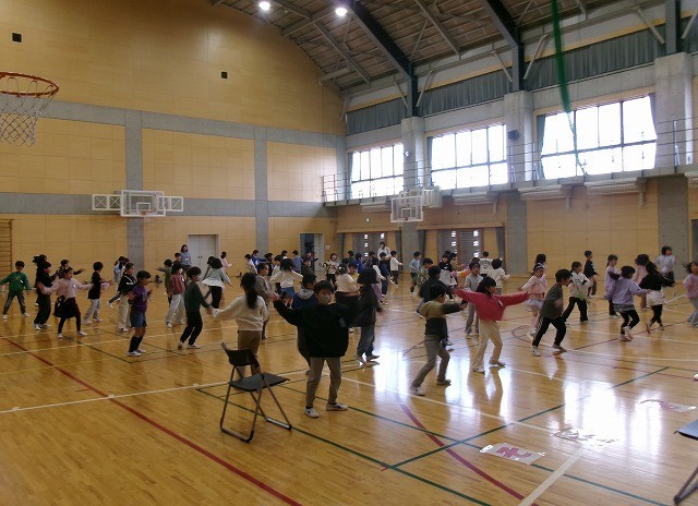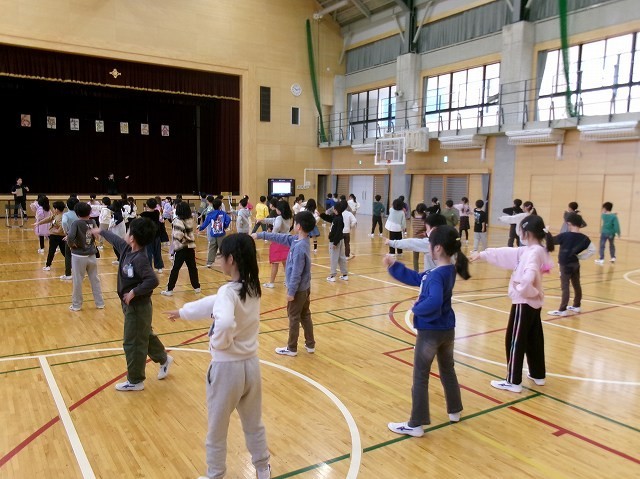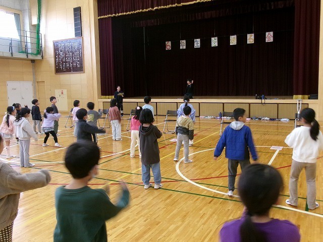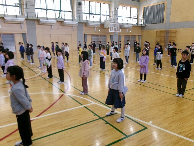 2年生が6年生を送る会の出し物の練習をしていました。