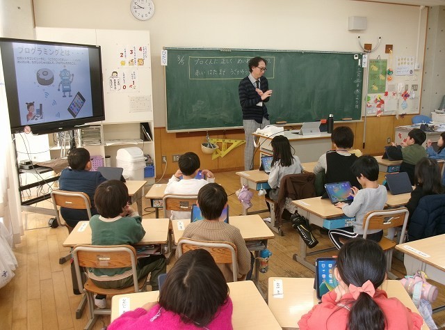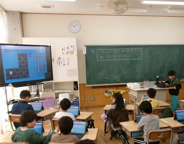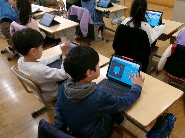 1年生がプログラミングの学習をしていました。