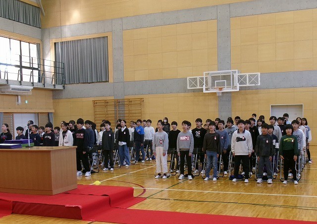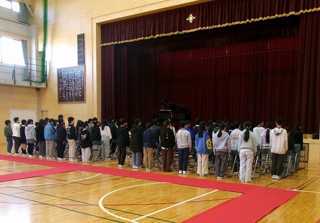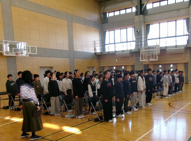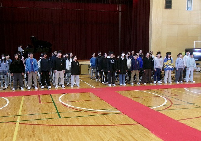 卒業式の全体練習 公開日 2026/03/12 更新日 2026/03/12 お知らせ 卒業式の全体練習が行われました。今までにも5年生と6年生の各学年で歌や呼びかけの練習をしてきました。それを合わせて行う初めての練習です。全員が緊張感をもって練習をすることができました。卒業式は19日木曜日です。あとたった5日間しかありません。何度も練習ができるわけではありませんが、卒業生のために、しっかりと練習しましょう。 +5 お知らせ
