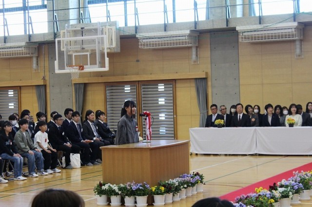 6年生代表児童による歓迎の言葉や学年での校歌斉唱は、「さすが最高学年」と感じられるとても立派な姿でした。