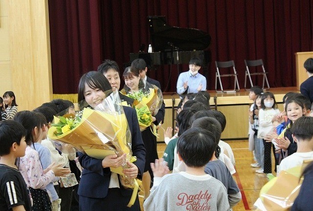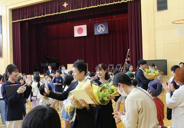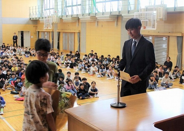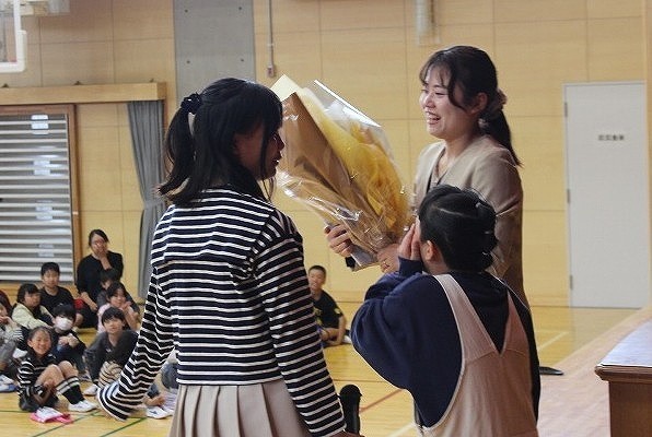 そして、児童からお世話になった先生方に色紙や花束をお渡ししました。