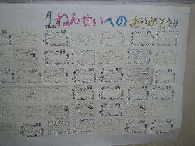 最後の写真は、児童会が「ありがとうラジオ」という企画で取り組んだもので、こどもたちの書いたありがとうのメッセージは、お昼の放送でたくさん読み上げられました。今は、それぞれの学年の廊下に掲示されています。「遊んでくれて、ありがとう」や「笑顔で元気をくれて、ありがとう」など、心のあたたまる交流がありました。