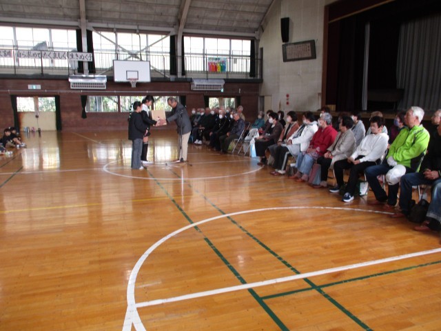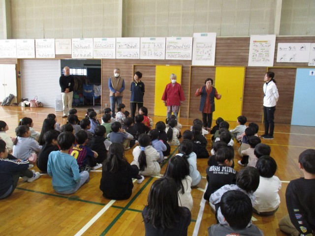 今日は北崎みどり会の皆様43名をお招きして、寿大学と1・3・5年との交流会を実施しました。始めの全体会には体育館に集まっていただき、みどり会様より「清掃用雑巾」をたくさん寄付していただきました。学校の掃除時間に大切に使わせていただきます。