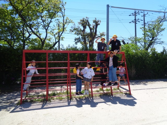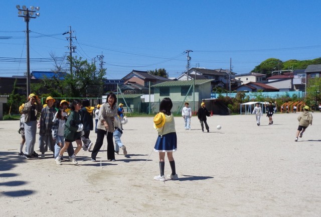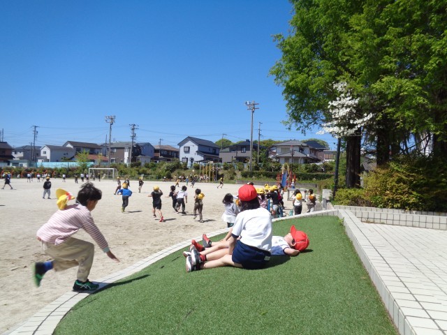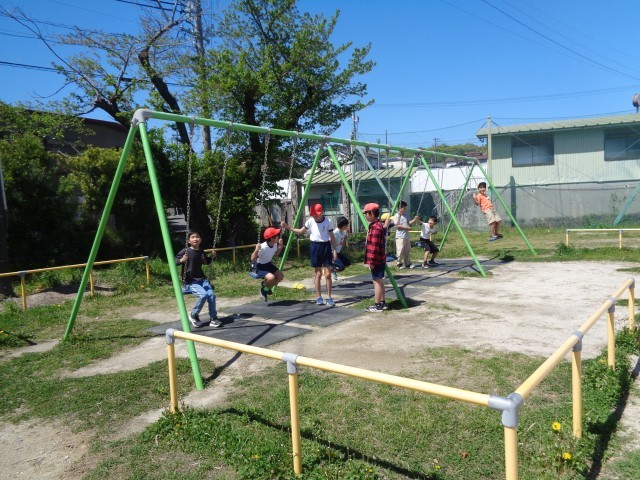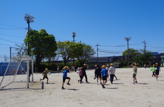 3枚目からの写真は、2年生以上のこどもたちが、2時間目の学力テストの後の大放課に外遊びをする様子です。青空のもと、鬼ごっこ、サッカー、一輪車、ブランコなどの遊具、なわとび、バスケ、芝生コーナーでゆっくりなど楽しくすごしました。