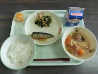今日の給食はご飯 牛乳いわしの生姜煮じゃがいものうま煮菜花の和え物蒲郡みかんプチ...