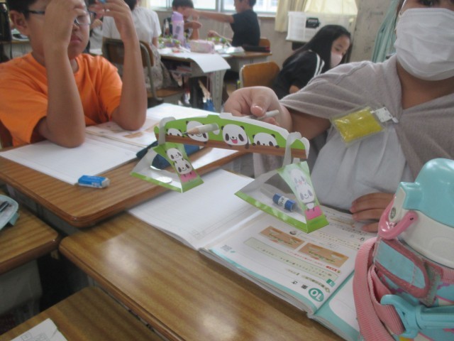 3年生の算数は「重さ」の勉強をしています。今日の授業では「重さ」を実感できるよう、教科書の付録のはかりを使って重さ比べをしました。1円玉を使い、1gの重さを体感しながら学びました。自分の持ち物の中に1gや2gの物が他にないか。子どもたちははかりを使って積極的に調べていました。
