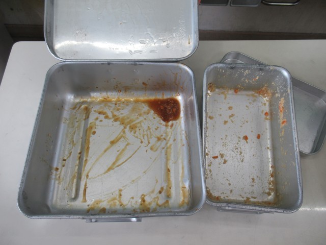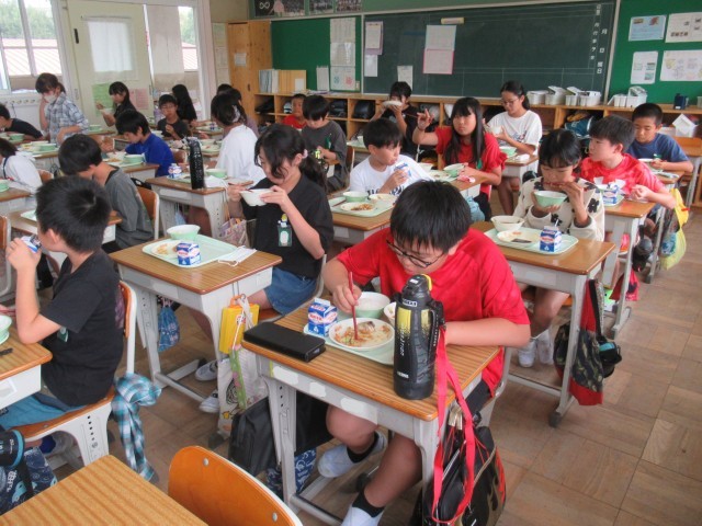 給食の時間、5年生の担任の先生が出張でいないため、代理で5年生の教室にお邪魔しました。先生が不在でも給食当番がてきぱきと配膳を行い、「いただきます」が早くできました。(写真1~5枚目)今日の給食の感想を児童に尋ねたところ、「今日もおいしい!」という声が聞かれ、味わいながら会食していました。(写真6~8枚目)食缶の中を覗いてみると全て空っぽ(完食!)で、とても清々しい気持ちになりました。(写真9、10枚目)