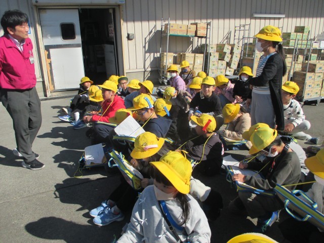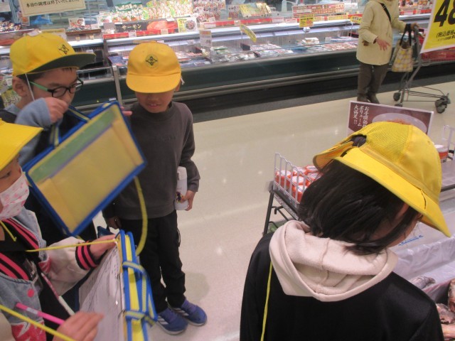 本日は、3年1・2組が「マックスバリュ大府店」を訪問し、実際の仕事について学びました。先週11月21日(金)に3・4組が見学したときと同様に、普段は見ることのできないバックヤードや売り場を見学させていただきました。見学では、従業員の方から商品の製造や販売に関するお話をうかがい、工夫している点や仕事への思いを知ることができました。実際に働く方々の「生の声」を聞くことで、販売の仕組みやそこで働く人々への関心がさらに高まり、最後の質問の時間には、子どもたちから次々と手が挙がり、活発に質問が続きました。今回の学習を通して、子どもたちは「お店の裏側では多くの人の努力や工夫によって成り立っている」ことを実感できたようです。「マックスバリュ大府店」の皆様、貴重な体験をさせていただき、ありがとうございました。