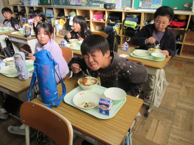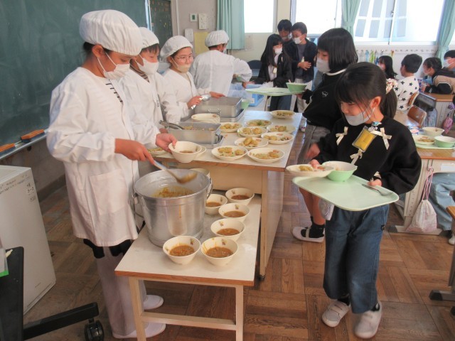 今日は3年生の給食の時間にお邪魔をしました。今日の給食は、子どもたちに大人気のカレーでした。カレーも玄米ご飯もおかわりが続き、きれいに完食! 欠席児童分で余っていた10個以上の白身魚のフリッターも全て食べ切り、どの子も満足そうな表情を見せていました。しっかり食事をとることは、健康の維持や丈夫な体づくりにつながります。日々の給食が、子どもたちの成長を支える大切な役割を果たしていることを改めて実感します。おいしい給食を作ってくださる調理員の皆様に、いつも感謝です。