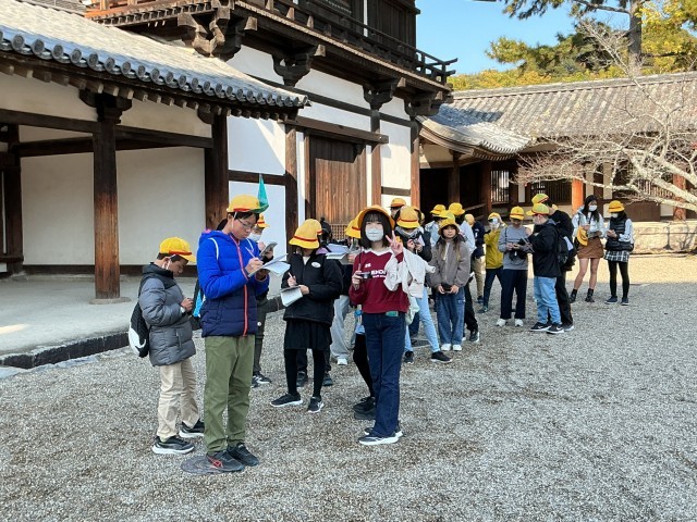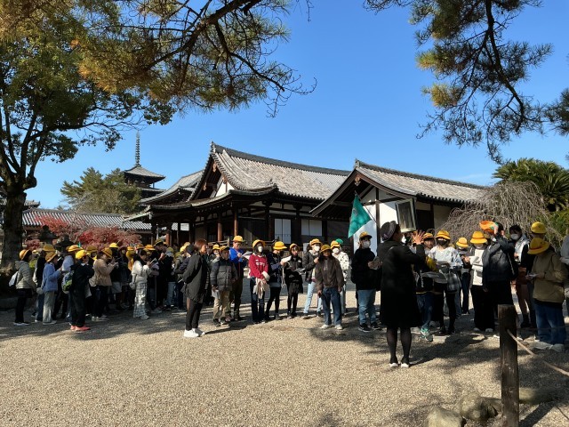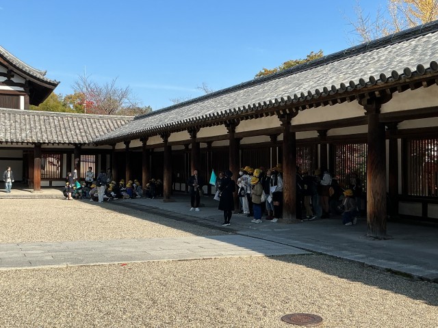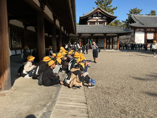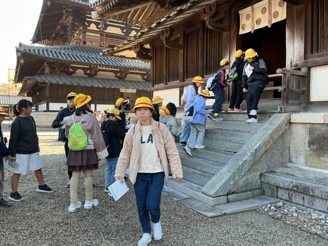 11/27(木)修学旅行1日目-4 公開日 2025/11/27 更新日 2025/11/27 6年 法隆寺②北山学び隊!バスガイドさんのガイドに熱心に耳を傾け、メモを取り、多くのことを学んでいました。 +3 6年生