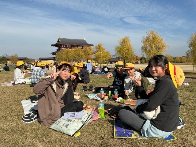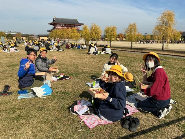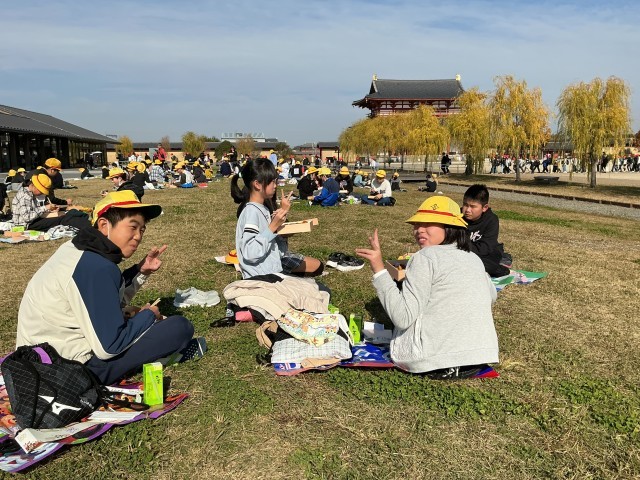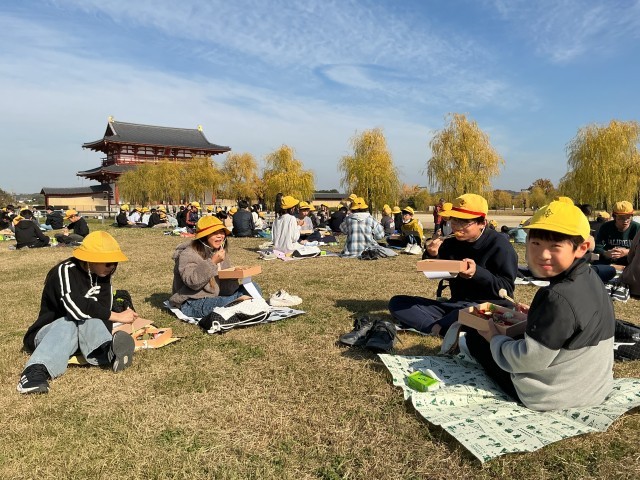 法隆寺を歩いている時から「お腹すいた」って言っていた子どもたちは、食べることに全集中です。