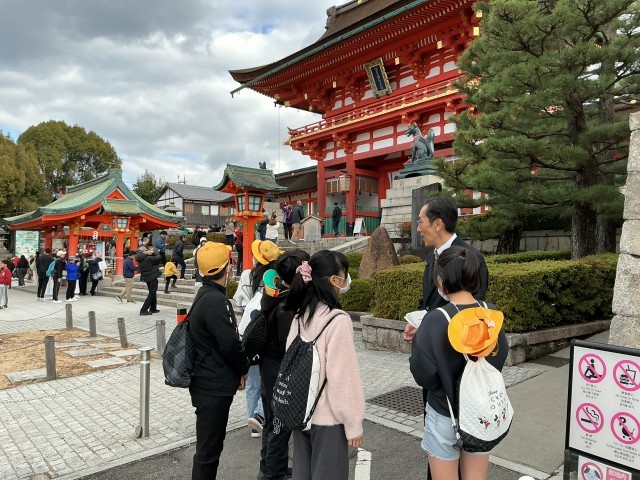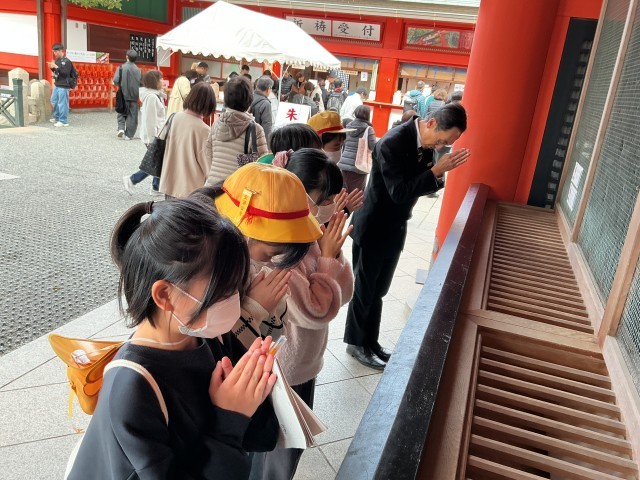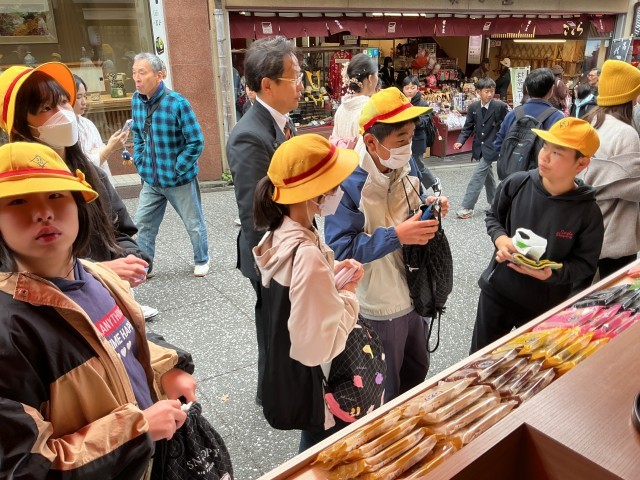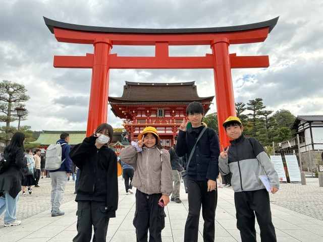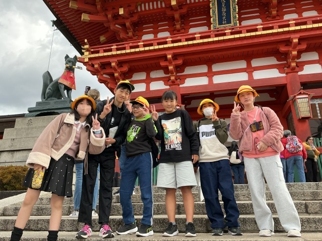 11/28(金)修学旅行2日目−5 公開日 2025/11/28 更新日 2025/11/28 6年 見学地はどこもすごい人出でした。タクシーの運転手さんによると、修学旅行のピークはとうに過ぎているそうなので、ピーク時はもっと多くの人が訪れていたようです。その中で奇跡的に出会えた班の様子です。 +3 6年生