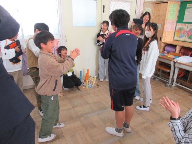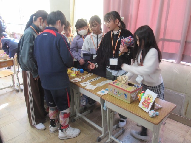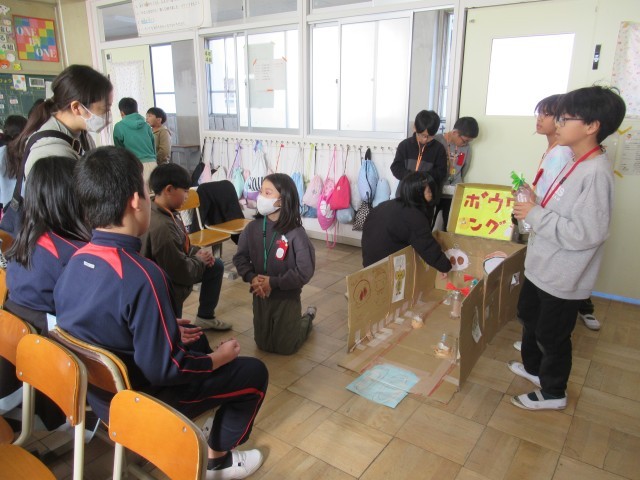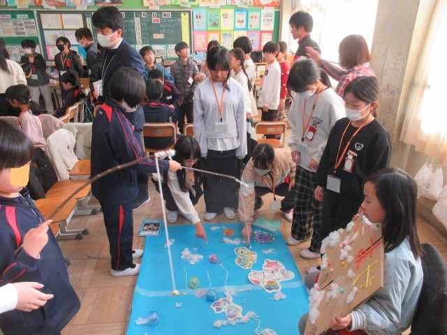 本日、4年生が大府もちのき特別支援学校の児童を招いて「学校間交流会」を行いました。4年生は、今日の交流会を迎えるにあたり、来ていただく児童のみなさんに楽しんでもらおうと、くじ引き(写真3枚目)や魚釣り(写真4枚目)、輪投げ(写真5枚目)、ボウリング(写真6、7枚目)のお楽しみコーナーづくりに今日まで取り組んできました。交流会が始まると、どのブースでも笑顔があふれ、参加した児童のみなさんに思いきりゲームを楽しんでもらうことができました。最後は、4年生からのお礼として、これまで練習してきた歌をプレゼントしました。(写真9、10枚目)今回の交流会は、4年生にとって企画することの楽しさや運営に取り組む姿勢、相手を思いやる気持ちの大切さを学ぶ貴重な機会となりました。今後の学校生活にも今日の経験が生かされることを期待しています。