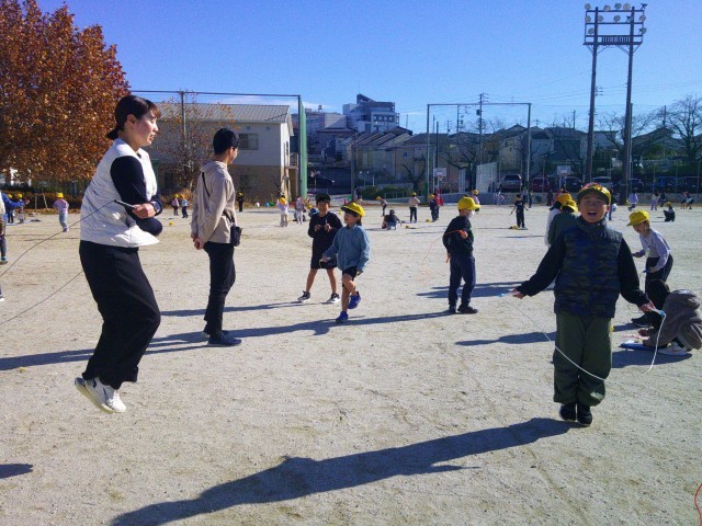 本日より「なわとびウィーク」が始まりました。大放課には、全校児童が運動場に出て、それぞれが立てた目標に向かってなわとびの練習に取り組みました。前とびや後ろとび、あやとびなど、子どもたちは自分に合った技に挑戦し、楽しみながら体を動かしていました。寒い中でも元気いっぱいになわとびに取り組む姿が多く見られ、運動への意欲の高まりを感じます。なわとびは、手軽に取り組める運動でありながら体力づくりにとても効果的です。「なわとびウィーク」は今週19日(金)まで続きます。今後も継続して取り組み、体力の向上につなげてほしいと思います。