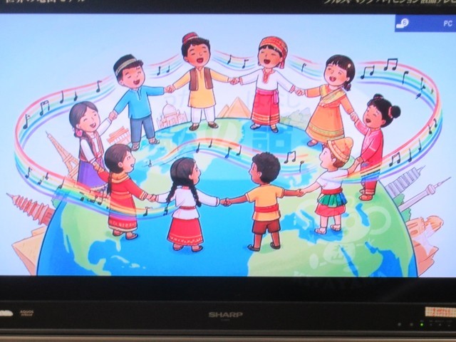 今朝のICT朝会では、校長先生から「歌」についてのお話がありました。「歌」は、まだ文字がなかった時代に、人々が気持ちを伝えようとして声を出す中で自然に生まれたもので、それが次第に「歌」になっていったのではないかと紹介されました。「歌」は、生きるため、そして人と人とがつながるために自然に生まれたもののようで、歌詞(言葉)とメロディによって多くのことを伝えてくれる「歌」に多く触れることで、心が豊かになるというお話でした。(写真1~3枚目)お話の最後には、校長先生が最近知って驚いたというユニークな曲『校長センセ、宇宙人説』を鑑賞し、校長先生の顔が宇宙人に変化するスライドが流れる仕掛けもあり、教室は笑いに包まれました。(写真4、5枚目)