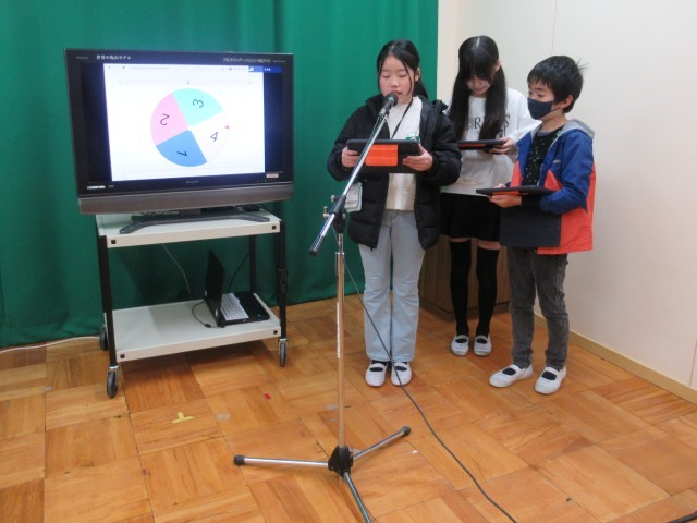 この後、総務委員会「いいとこみっけたい」から、学級のよいところを発表する会についてお知らせがありました。(写真6枚目)発表する学級を決めるルーレットが行われ、どの学級が選べばれるのか、わくわくした雰囲気に包まれました。さらに、新しい取組『きたやまっ子じまん祭り』の募集についても紹介がありました。(写真7、8枚目)自分のすてきなところを伝えられる機会として、たくさんの児童が参加してくれることを願っています。最後に、剣道大会で1名、卓球大会で2名、合わせて3名の児童が表彰されました。(写真9、10枚目)