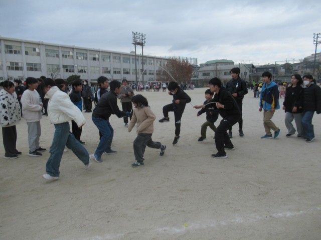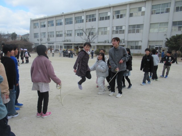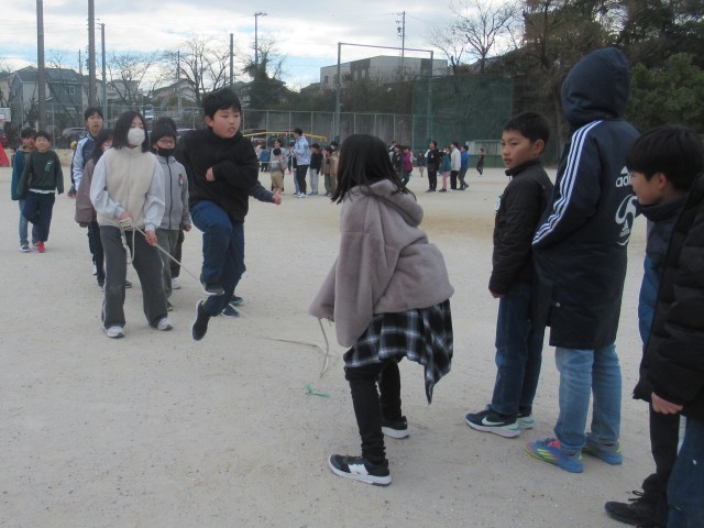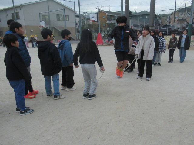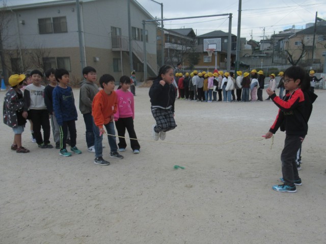 19日(月)より始まった「なわとびチャレンジ」は、本日最終日を迎えました。学級ごとに3分間での「8の字跳び」の合計回数の目標を掲げ、毎日挑戦してきました。チャレンジを始めた頃は、縄にすぐに引っかかってしまったり、列が途切れて連続して跳ぶ回数がなかなか増えない様子も見られました。しかし、練習を重ねるうちに少しずつコツをつかみ、学級全体で協力しながら、毎日記録を更新することができました。跳ぶ技術が身に付いただけでなく、声を掛け合い励まし合うことで、学級の仲間同士の絆もより深まるよい機会となりました。記録とともに、心に残る素敵な思い出として記憶に残る一週間となりました。