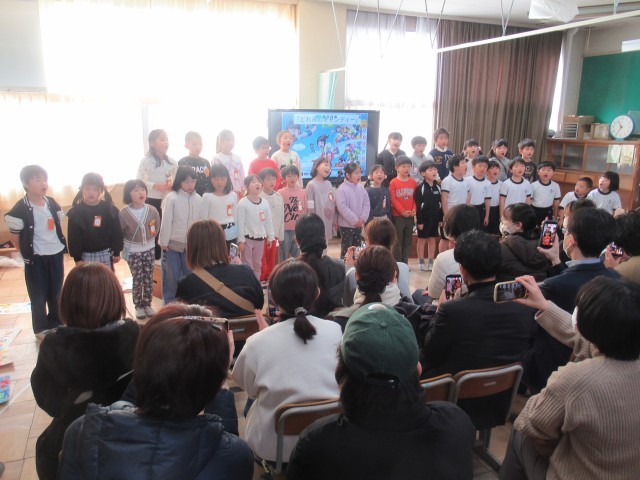 本日は、今年度最後となる3学期の授業参観を行いました。低学年は2時間目、中学年は3時間目、高学年は4時間目に、それぞれの学級で授業を公開し、多くの保護者の皆様にご参観いただきました。1年生は、生活科の学習の一環として「もうすぐ2年生~できるようになったよ~」をテーマに発表会を行いました。(写真1~6枚目)児童一人一人が、この1年間でできるようになったことを保護者の前で堂々と発表し、成長した姿を見せてくれました。2年生は教科の授業を参観していただき、日頃の学習に取り組む様子をご覧いただく貴重な機会となりました。(写真7~9枚目)