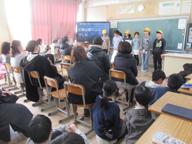 5年生は、理科や算数の授業を公開し、日頃の学習に意欲的に取り組む児童の様子を参観していただきました。(写真1~5枚目)6年生は、総合的な学習の時間の一環として「修学旅行報告会」を行いました。(写真6~9枚目)発表では、プレゼンテーション資料に加え、この日のために制作した小物を使った寸劇を取り入れるなど、参観する方に楽しんでいただける工夫が随所に見られました。内容・表現ともに工夫された発表からは、最高学年としての成長が感じられ、「さすが6年生」と思わせる時間となりました。本日もたくさんの保護者の皆様にご参加いただき、ありがとうございました。