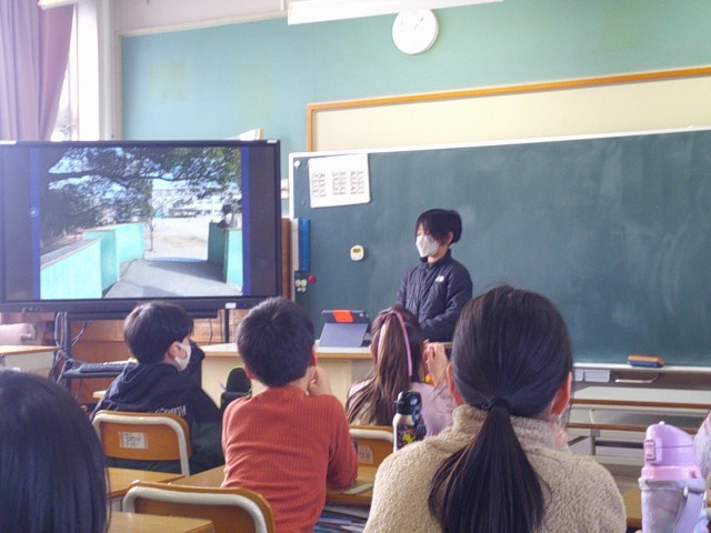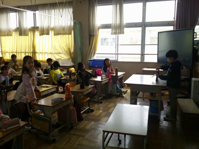 3/11(水) 3年国語「お気に入りの場所、教えます」 公開日 2026/03/11 更新日 2026/03/11 3年 +7 3年生が、国語「お気に入りの場所、教えます」の学習で、学校の中のお気に入りの場所を紹介する発表を行いました。子どもたちは、教科書のお手本をもとにして、「はじめ・中・終わり」の段落を意識しながら台本を作りました。また、「みなさん知っていますか」「ぜひ行ってみてください」など、聞いている人に呼びかける言葉も工夫して入れていました。発表では、自分のお気に入りの場所を写真に撮り、スライドを作って紹介しました。台本をしっかり覚え、みんなの前で堂々と発表する姿が見られました。発表を聞いた子どもたちからは、「発表の仕方が聞きやすかった」「その場所の思い出やよさが分かった」といった感想が伝えられました。教室は、友だちのよさを認め合う、温かい雰囲気に包まれていました。 3年生