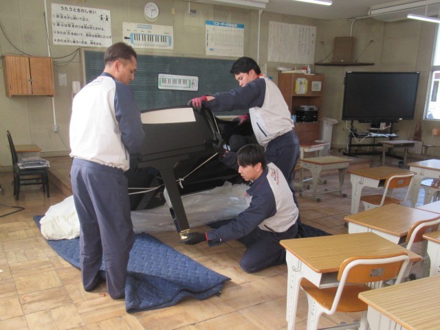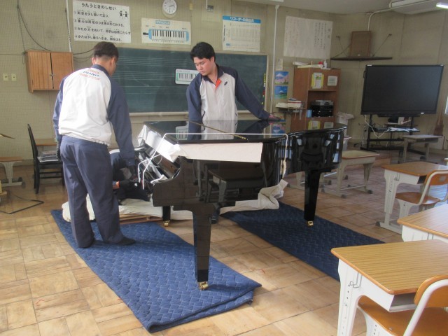 本日、第1音楽室に新しいグランドピアノが運び込まれました。トラックから専門業者の方々の手によって音楽室へと丁寧に搬入されたピアノは、その後、手際よく組み立てられ、短い時間で完成しました。これまで使用していたピアノは、開校当時から設置されていたもので、実に50年以上にわたり大切に使われてきた歴史あるものでした。令和6年12月5日には第2音楽室のグランドピアノも新しいものへと更新されており、これで北山小学校の2つの音楽室に最新のグランドピアノがそろいました。これからも、子どもたちの豊かな音楽活動を支えてくれる大切な楽器として、心を込めて大切に使っていきたいと思います。