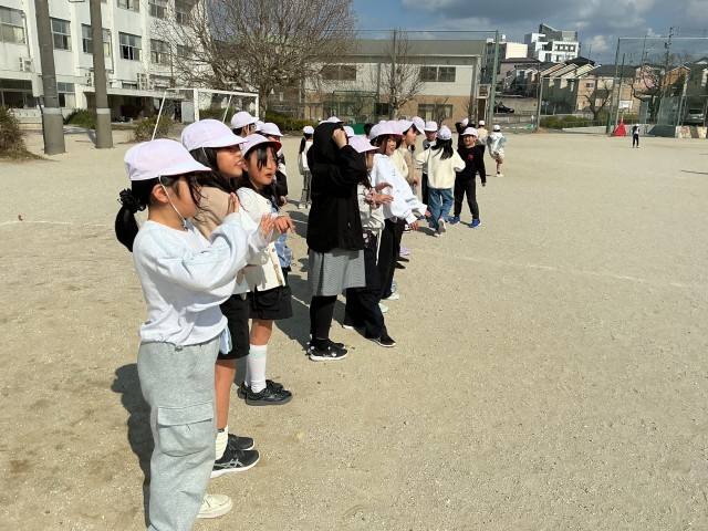 3年生最後の学年集会を行いました。はじめに、4年生に向けて、3月24日に行うことや始業式の日の過ごし方、心構えについて確認しました。その後、各学級担任から子どもたちへメッセージを送りました。子どもたちは、4年生になる自覚をもち、真剣な表情で話に耳を傾けていました。後半は、学年全員で「変わり鬼」を行い、広い場所を思い切り走り回って遊びました。友達と笑顔で関わる姿から、この1年間で深まった絆を感じることができました。楽しい時間はあっという間に過ぎ、心に残る大切な思い出となりました。
