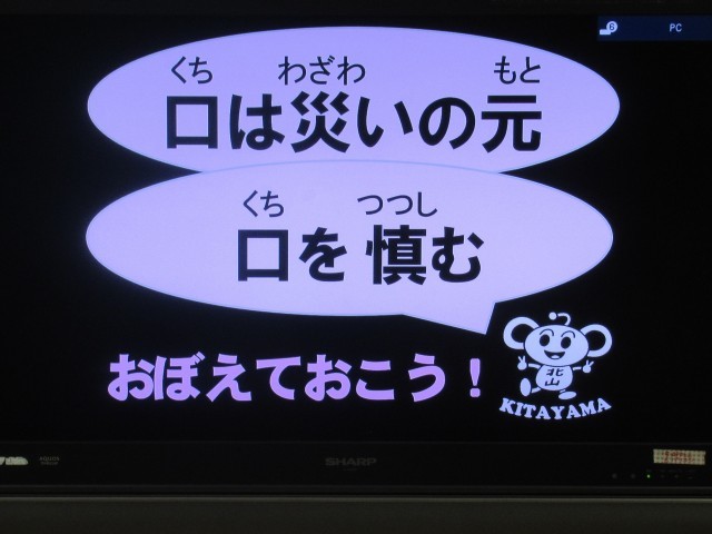 本日、修了式を行いました。3月中旬頃から水ぼうそうが流行したため、感染予防の観点から、今回はICT放送による修了式としました。式の中で校長先生から、「修了式とは、それぞれの学年にとっての卒業式である」というお話がありました。また、「口(言葉)」についてのお話もありました。脳が多く使っている体の部位を示した図(写真7枚目)から、手(指)や口が大きく関わっていることが紹介されました。手や口を動かすことで、脳は活発に働き、鍛えられるそうです。一年間の学びを振り返ると、日々の活動の中で手や口を使ってきたことが、脳の成長にもつながっているというお話でした。一方で、口(言葉)の使い方について大切にしてほしいことも伝えられました。口偏の漢字には、「嘘」や「喧嘩」など、トラブルの原因になり得る言葉(写真8枚目)も多くあります。「口は災いの元」という言葉があるように、言葉の使い方には十分気を付けるとともに、ときには「口を慎む」ことの大切さについても考える機会となりました。(続く)