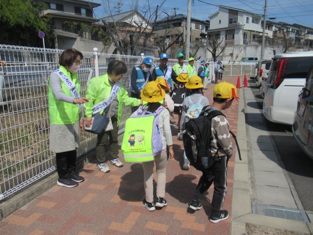 下校時に、地域の皆様が来校してくださり、子どもたちの安全を温かく見守ってくださいました。恒例のハイタッチでは、「さようなら」「元気でね」「また4月に会おうね」と、まるで友達と話しているかのような笑顔いっぱいの声かけで、子どもたちを見送ってくださいました。その様子からは、北山っ子が地域の皆様に愛され、北山っ子自身も地域の方々に親しみを感じていることが、ひしひしと伝わってきました。4月以降も、こうした微笑ましい光景が見られることを、とても楽しみにしています。かけつけてくださった地域の皆様、本日もありがとうございました。