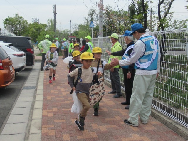 本日も、社会福祉協議会の方々や地域の皆様にご協力いただき、見守り下校を行いました。今日は年に一度の「通学団下校」が実施され、担当の先生の引率のもと、通学路の安全点検や「こども110番の家」の場所の確認が行われました。見守りで来校された皆様とのハイタッチも毎回の恒例となっており、笑顔あふれる子どもたちの姿が微笑ましかったです。見守り下校にご参加くださった皆様、今日もありがとうございました。
