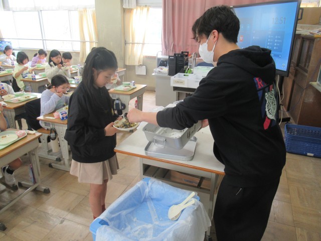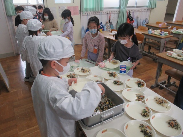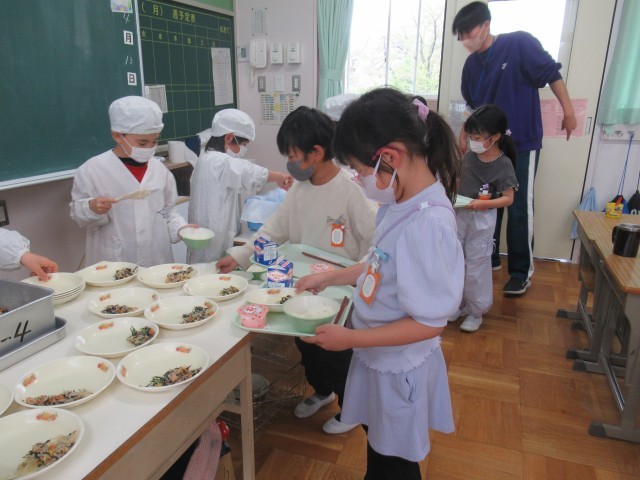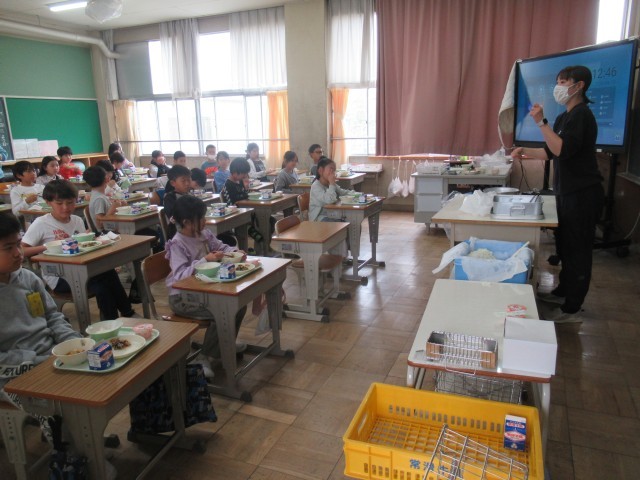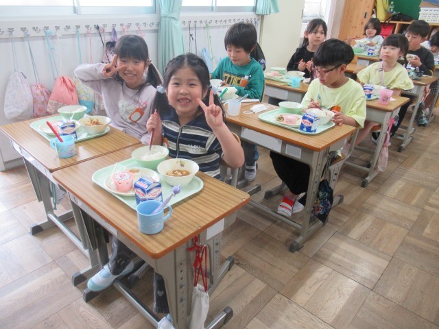 本日より給食がスタートしました。大府市内の小中学校は全て「自校給食方式」を採用しており、校舎に隣接した調理室で作られた温かい給食が提供されています。初日の今日は、担任の先生から配膳の準備の仕方やおかわりの方法、片付けの手順などについて説明を受けました。子どもたちは真剣に話を聞き、これから始まる給食の時間に期待をふくらませている様子でした。本日の献立である「麻婆豆腐」は子どもたちに人気のメニューで、ごはんや他のおかずも含めておかわりが続き、見事に完食(写真⑩)となりました。明日も給食が楽しみです。