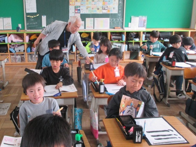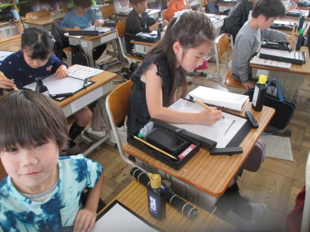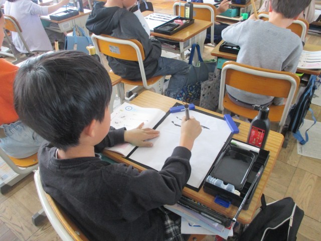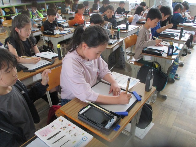 4/27(月) 3年「書写」 初めての習字に取り組みました
