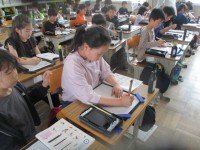 後半は,同じイベントでデザインが異なる2つのポスター「コスモス祭り(写真4枚目)」を取り上げ,それぞれの長所や共通点について考えました。さまざまな意見が出され,作成者の意図を考える機会となりました。