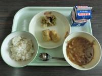 今日の給食は麦ご飯 牛乳おからと大豆の焼売生揚げの中華煮チンゲンサイの中華和え ...