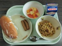 今日の給食は小型ロールパン 牛乳ウインナーのケチャップソースかけ切り干し大根入り...