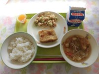 9月24日 給食 公開日 2025/09/24 更新日 2025/09/24 給食 今日の給食は麦ご飯、牛乳、ハヤシライス、ピーマンとベーコンのソテー、冷凍みかんエネルギー608キロカロリー、たんぱく質22.5グラムです 給食