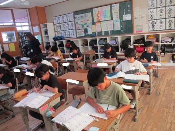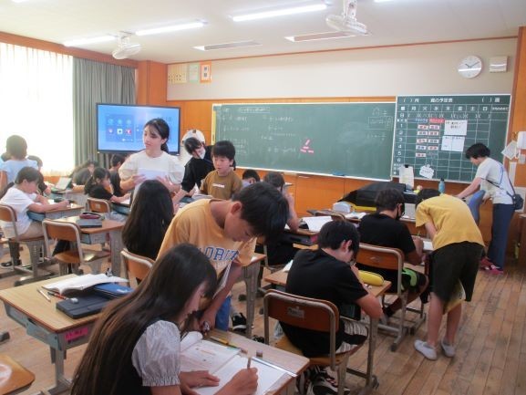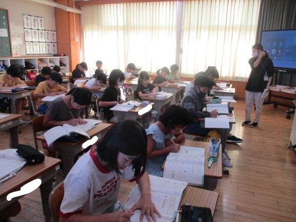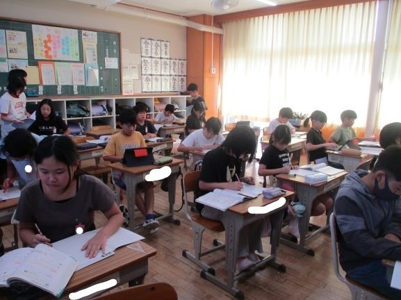 9月30日 分数を小数で表そう(5年1組) 公開日 2025/09/30 更新日 2025/09/30 5年 1/10=0.1、1/2=0.5というように小数と分数の関係について思い出し、分数を小数で表す方法を考えました。(分子)÷(分母)で分数を小数で表すことができることを知り、練習問題を解くことで身に付けているところです。友達と確認したり、分からない部分を聞いたりしながら進めていきました。 +1 5年生