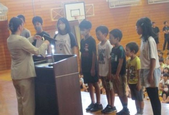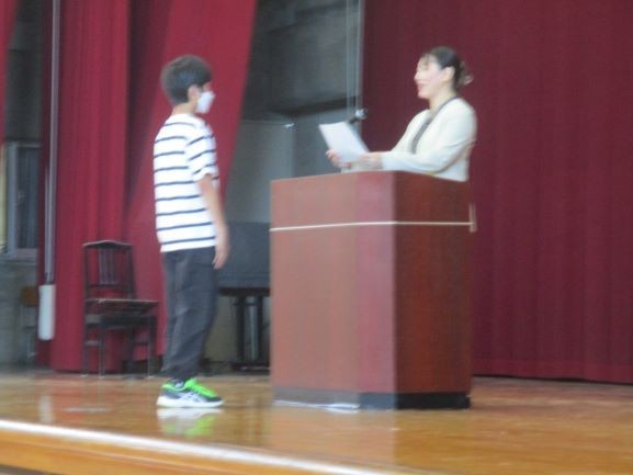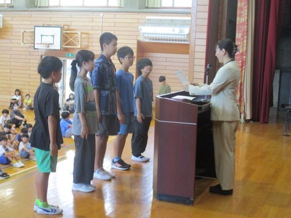 10月6日 朝会 公開日 2025/10/06 更新日 2025/10/06 学校行事 今日の朝会は、表彰と任命を行いました。任命は後期児童会役員と学級委員の任命です。10月からの半年間、学校や学級のリーダーとしての活躍を期待しています。体育委員会からは月目標「きずなのバトン、努力の先には勝利のゴール」が発表されました。みんなで協力して、運動会を盛り上げていきましょう。 +3 学校行事