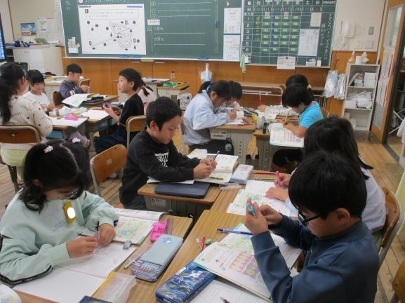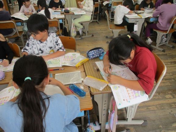 10月21日 コンパス(3年1組) 公開日 2025/10/21 更新日 2025/10/21 3年 コンパスは円を描くだけの道具ではありません。長さを写し取ることもできます。今日の授業は、コンパスを使って長さを写し取り、長さ比べをしています。三角形と四角形の周囲の長さ比べでは、定規で各辺の長さを測ってたし算をするよりも、直線に写した長さのしるしをつけていく方法の方が簡単で早いことを実感しました。 +1 3年生