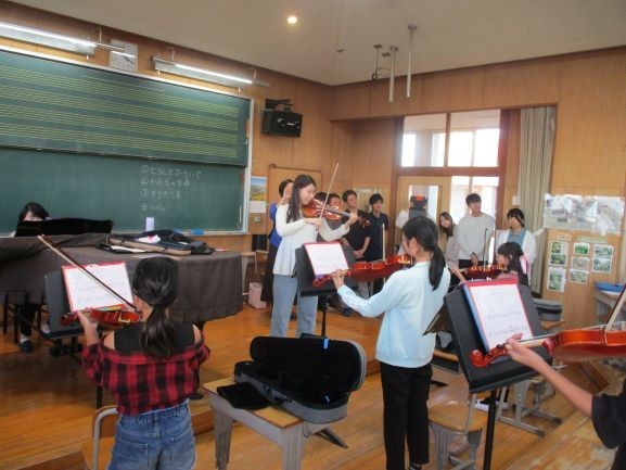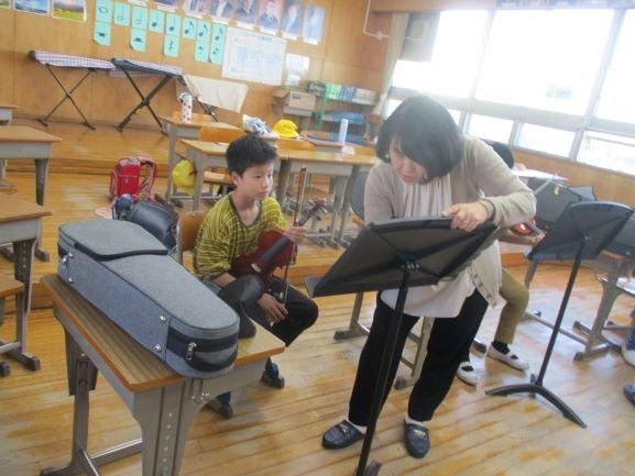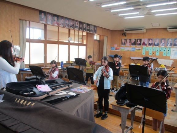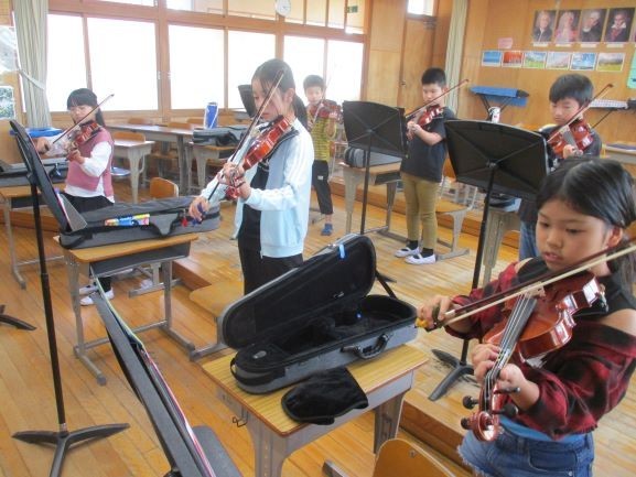 本日は小学校放課後活動支援事業のバイオリン前期の最終日でした。バイオリンは通年の活動ですが、中間発表として今まで練習した曲を発表してくれました。12回の練習で3曲弾けるようになっていました。こんなに手厚く教えていただけるなんて、うらやましいです。発表を聴いた教職員からは「すごいじょうずだったね」「自分もやってみたいなあ」という声が聞こえてきました。後期の練習も頑張ってください。