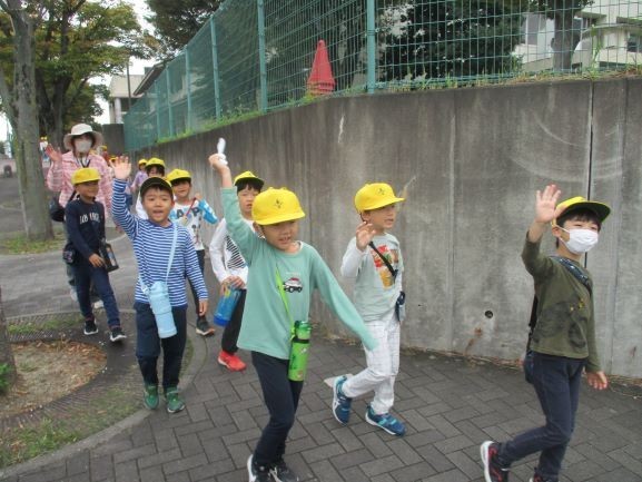 10月24日 秋見つけに出発 公開日 2025/10/24 更新日 2025/10/24 1年 1年生はどんぐりを拾いにセレトナ(二つ池公園)に出かけました。2年生と出発時間が同じだったため、お互いに「いってらっしゃい」とあいさつを交わしながら出かけていきました。昨日は持ち物の準備をきちんとお家の方に伝えることができたようで、持ち物はばっちりです。どんな形のどんぐりを見つけてくるのかな。 +6 1年生