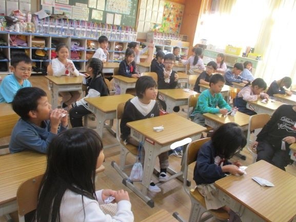 11月6日 九九(2年2組) 公開日 2025/11/06 更新日 2025/11/06 2年 2年生は、今、九九を頑張っています。今日は、担任ともう一人の教員が一人ずつ九九を聞いていました。「○の段を言って」とランダムに出されたお題に従って、九九を唱えています。お家でもたくさん練習に付き合ってくださり、ありがとうございます。ここでしっかりと九九を身に付けることが、算数への苦手意識をもたせないために大切になります。定着までよろしくお願いいたします。 +6 2年生