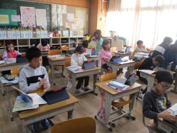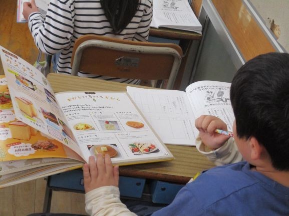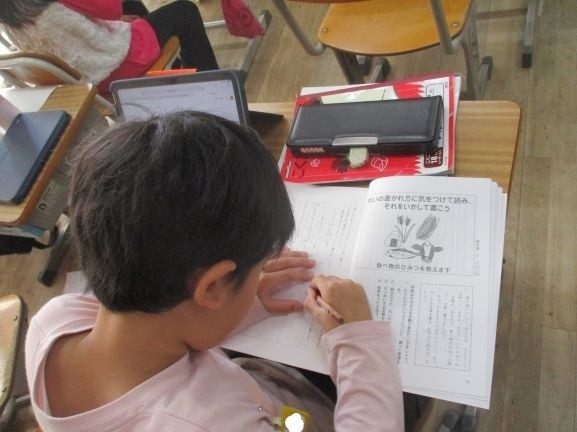 11月10日 姿を変える大豆(3年3組) 公開日 2025/11/10 更新日 2025/11/10 3年 「すがたをかえる大豆」という説明文の読み取りをしました。そして、他の食材でも同じように加工によって姿を変えているものはないか調べています。本やインターネットを使って調べ、副教材に整理をしながらまとめています。調べたことを元にして、わかりやすく説明する文章を書いていきます。 +4 3年生