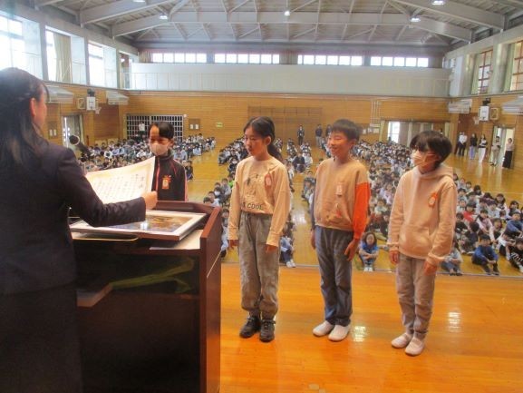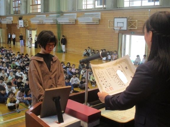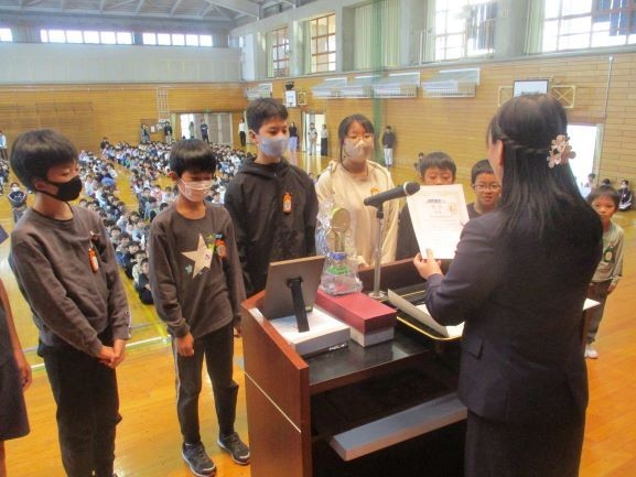 11月10日 朝会 公開日 2025/11/10 更新日 2025/11/10 学校行事 はじめに、未来の車コンテストと地域のスポーツ活動に参加している人たちの表彰を行いました。 次の教員の話では、この秋に亡くなったお父様の最後の言葉が「ありがとう」ということであったことから、ありがとうの反対は当たり前。当たり前のことができるのは当たり前ではないので、日々感謝をして過ごしてほしいというものでした。 最後は、美化委員会から月目標「協力し 美しくしよう 学校を」が紹介されました。 +4 学校行事
