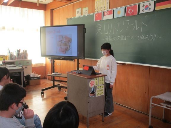 6年生は総合的な学習の時間に、自分が決めた国について発表をしました。一人で堂々と発表する姿はさすが6年生でした。聞き手により伝わるように、わかりやすいスライドを用意したり、話し方を工夫したり、身振り手振りを入れたりしていました。一人1回の発表だったため、友達の発表を聞く時間が長かったのですが、集中して聞いていた姿も最高学年にふさわしい姿でした。