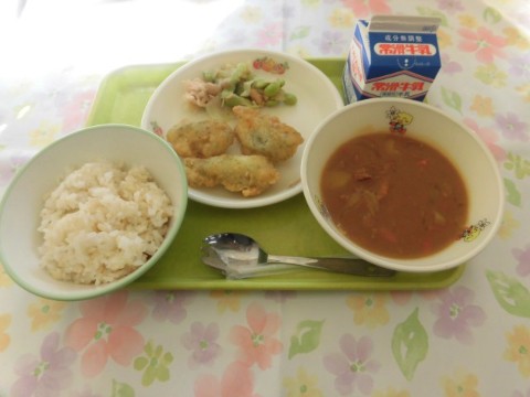 11月26日 給食 公開日 2025/11/26 更新日 2025/11/26 給食 今日の給食は、王カット玄米ご飯、牛乳、白身魚のフリッター、カレー、まめまめサラダ(和風ドレッシング)エネルギー676キロカロリー、たんぱく質25.9グラムです 給食