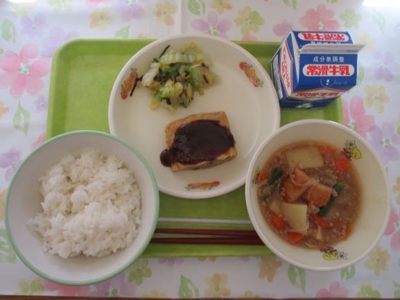 12月1日 公開日 2025/12/01 更新日 2025/12/01 給食 今日の給食は、ご飯、牛乳、けんちん信田の甘味噌かけ、じゃがいものそぼろ煮、白菜の昆布和えエネルギー633キロカロリー、たんぱく質24.1グラムです 給食